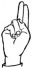 На ћирилици написано МИОМИРА КОВЛЕНИЋ састоји се из 15 слова [?]. Исписано ћириличном једноручном азбуком за глувонеме: